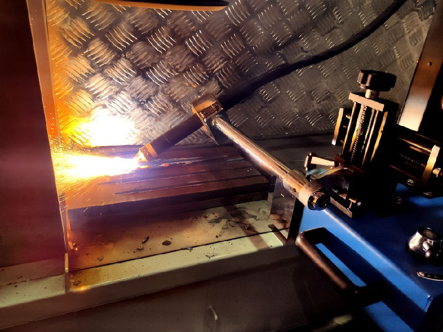 不仅拥有多种类的切割设备,更有被近期中国工信部首批的专、精、特、新“小巨人”培育企业的支撑产品埋弧焊机系列。本次演示了埋弧焊双弧双丝自动焊,其中,特色电源是数字化逆变式交直流方波多功能埋弧焊机ZDE7-1200HD,它采用交流方波控制技术,具有交流频率、波形平衡、直流偏置三种交流输出参数独立可调的功能。适用于单弧单丝、双弧双丝、三弧三丝等多种埋弧焊工艺。