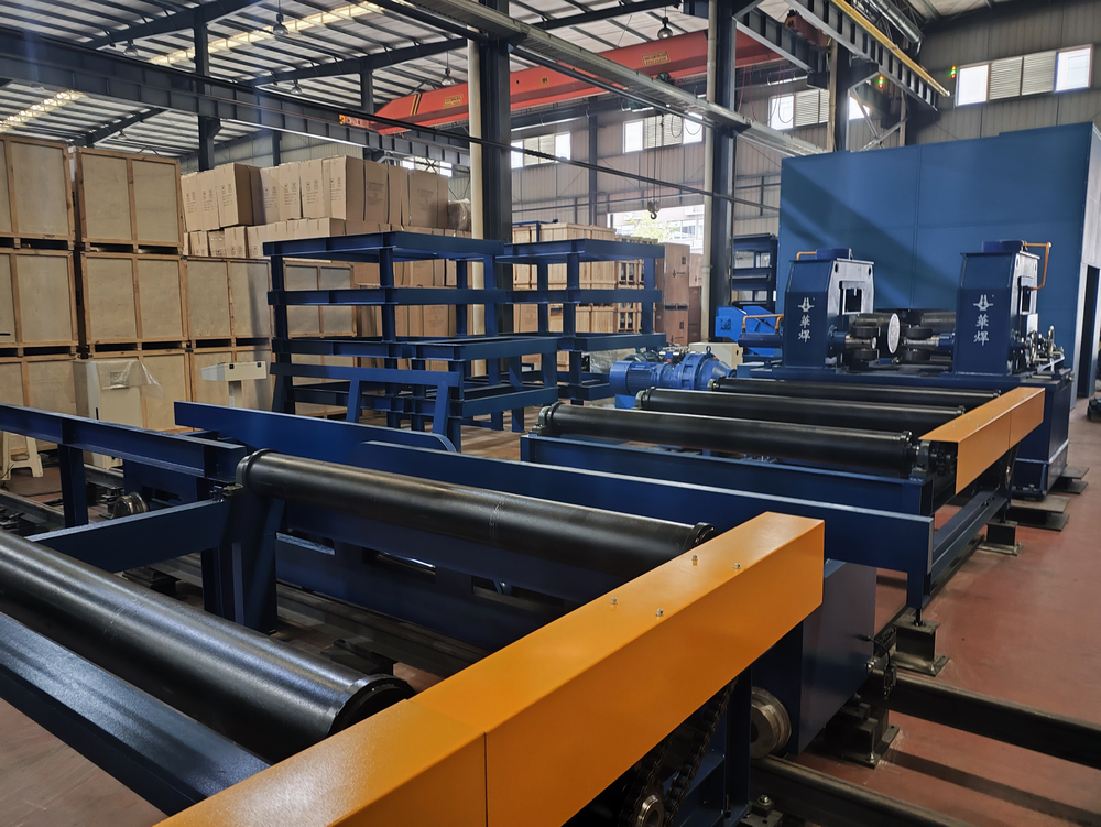 H型钢自动化生产线主要由H型钢组立机、180翻转架、移钢机、60翻转架、悬臂双丝埋弧焊专机、矫正机和输送辊道组成。